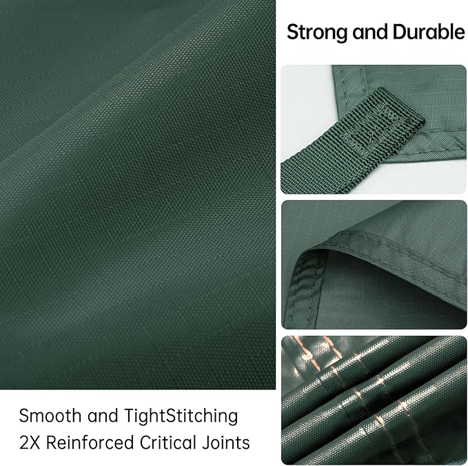 - HEAVY DUTY&PORTABLE:Large size in 118" × 126" when expended,enough for 2 persons.It's convenient to folded and put into a lightweight stuff sack when not in use,essential tarp gear for your outdoor travel.Net weight:1.2kg(42oz),not super light but heavy duty