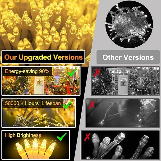 - Crafted to endure, these string lights boast a waterproof build and are composed of premium materials, incorporating advanced LED beads for even greater beauty and brilliance. Ideal for indoor or outdoor use, they can withstand the elements, be it rain or snow. With their long-lasting bulb life, you can look forward to many seasons of dazzling displays without the need for frequent replacements.