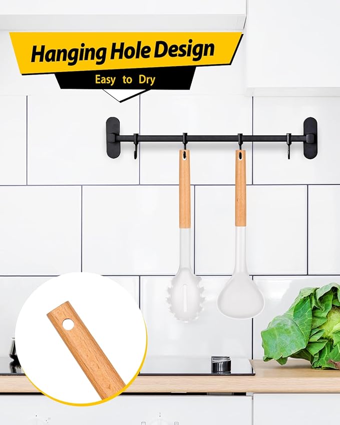 - Thoughtful Design : Wooden handle keeps you away from the trouble of kitchen utensils rusting or breaking; This anti-scald wood handle is not easy to conduct heat and is more comfortable to hold than traditional utensils