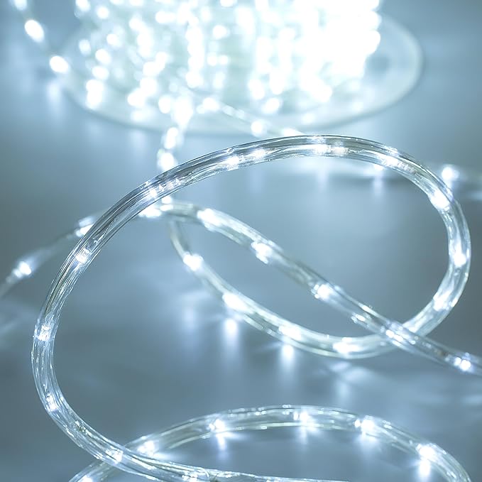 Waterproof LED Rope Lights, Connectable & Flexible with 8 Modes, Outdoor Lighting for Deck, Garden, Pool, Patio & Christmas Decor (White, 100ft)