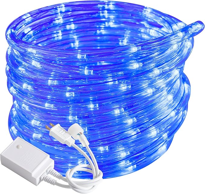 Waterproof LED Rope Lights, Connectable & Flexible with 8 Modes, Outdoor Lighting for Deck, Garden, Pool, Patio & Christmas Decor (Blue, 50ft)