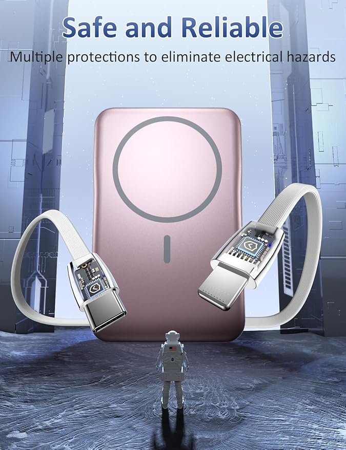Magnetic Portable Charger, 10000mAh Power Bank, 5 in 1 Portable Charger with Built in Cable, 20W Fast Charging for Magsafe Battery Pack Compatible with iPhone 16/15/14/13 Pro/Pro Max, Samsung Series