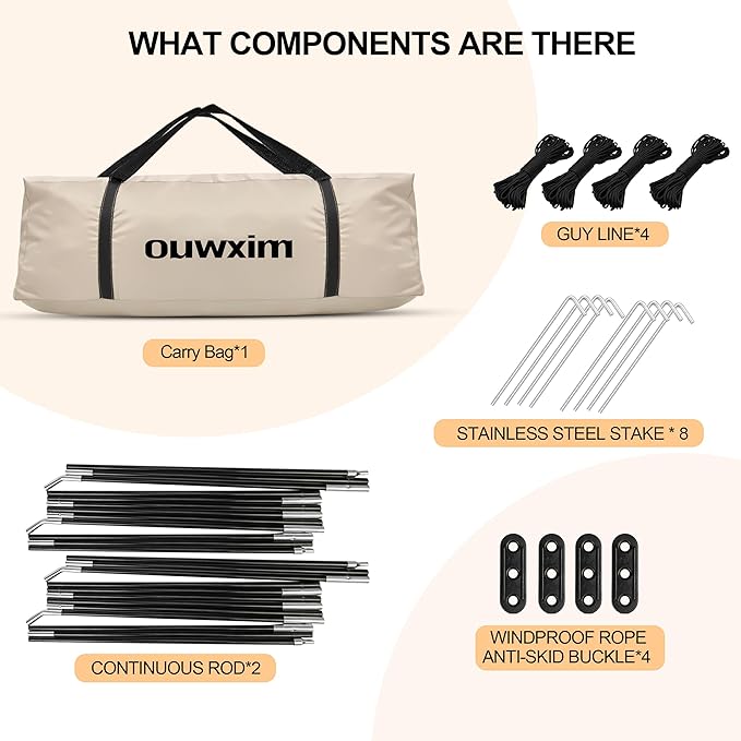 - 【Durable and high quality materials】Portable camping screen tent is made of 210D Oxford cloth, waterproof grade 1000+,Screened tent frame is made of high-strength fiberglass roof poles and side steel poles; it offers you a great sense of protection and security from the elements