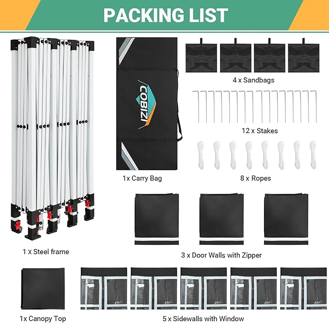 - 【COBIZI Commitment】Our tent frame comes with a one-year warranty, while the fabric and accessories come with a six-month warranty. We also offer 24/7 customer service to assist you in understanding the product better and resolving any quality issues you may encounter after purchase. We are honored to be of service and welcome any inquiries you may have.