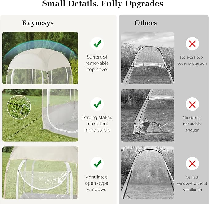 - 540-Degree Clear View: Pop up tent has 4 clear sides and 540-degree transparent window, which provides you with an excellent view. Suitable to participate in outdoor activities and enhance the viewing experience. Sports pod has a waterproof raised bottom and a sun-proof top cover, providing good protection for outdoor life.