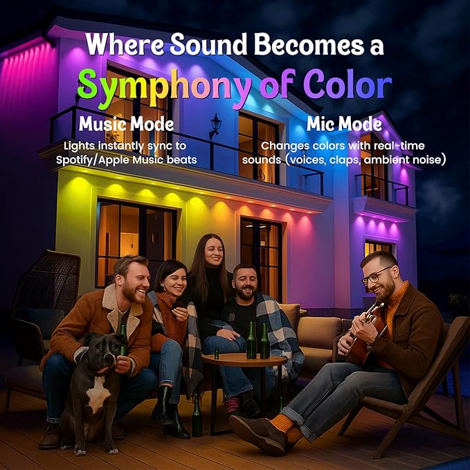 - 【Dynamic Color Selection & Scene Modes】: The eave light has 48 scene modes and 16 million colors to choose from. The lens design reveals a unique triangular lighting effect that lights up houses with outdoor deck decorations for all occasions, easily energizing your friend's party, backyard dinner or tent wedding.