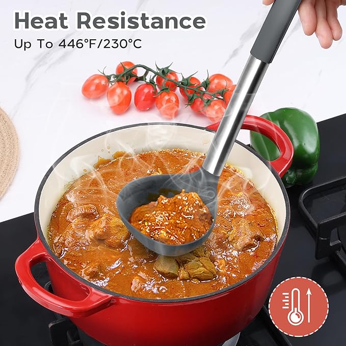 - Heat-resistant: this BPA-free silicone utensils set can withstand temperatures up to 446°F, will not melt when stirring food, and the stainless steel handle stay cool to the touch during cooking, preventing burns and ensuring a secure grip