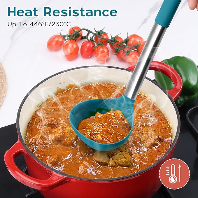 - Heat-resistant: this BPA-free silicone utensils set can withstand temperatures up to 446°F, will not melt when stirring food, and the stainless steel handle stay cool to the touch during cooking, preventing burns and ensuring a secure grip