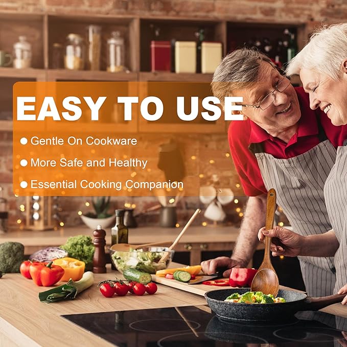 - 100% PURE TEAK CONSTRUCTION - The wooden utensils set are carved from single blocks of natural teak wood. these cooking utensils boast a flawlessly polished surface, ergonomic contours, and exceptional structural integrity. Resistant to splitting and warping.