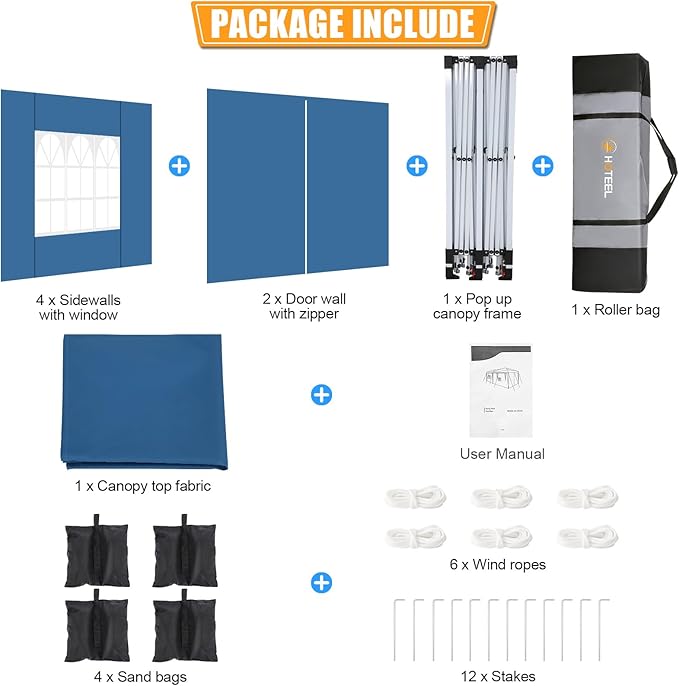 HOTEEL 10x20 Pop Up Canopy with 6 Sidewalls,One-Push Setup Canopy Tent with 8 Windbreak Poles,Waterproof Shade 10x20,Outdoor Canopies for Parties,Weddings,Camping,Patios (Blue)