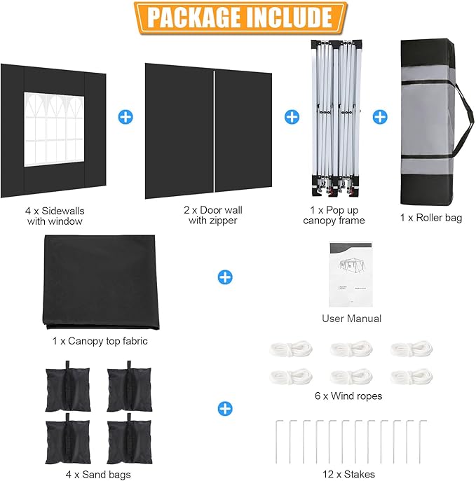 - Stable and Windproof: The 10 x 20 pop up canopy tent includes 8 extra windproof poles, enhancing stability and wind resistance compared to traditional tents. The frame is thickened and powder-coated to prevent rust and corrosion.