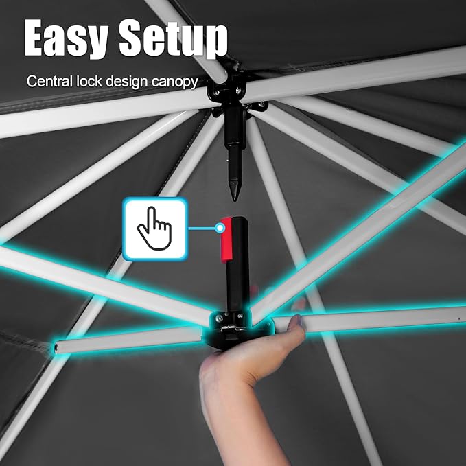 - Easy Pop Up Canopy: This 10 x 20 outdoor canopy features one-touch center lock technology with two center locks, allowing one person to easily lock all four legs with just a push, making installation a breeze.