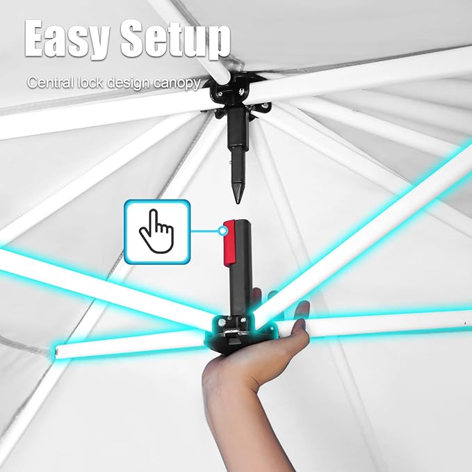 - Easy Pop Up Canopy: This 10 x 20 outdoor canopy features one-touch center lock technology with two center locks, allowing one person to easily lock all four legs with just a push, making installation a breeze.
