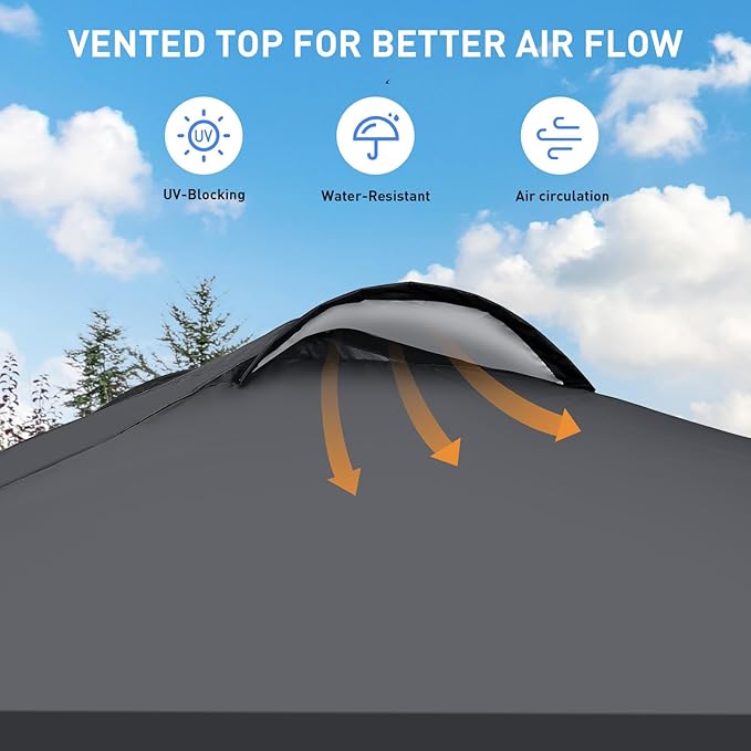 - 【Upgraded Canopy Fabric】This 10x10 ft outdoor canopy cover is made of the 210D oxford cloth with silver coating, which is durable, waterproof, and ultraviolet-proof. Integrated air vents provide a better air flowing, reducing fabric tearing risks.