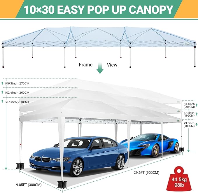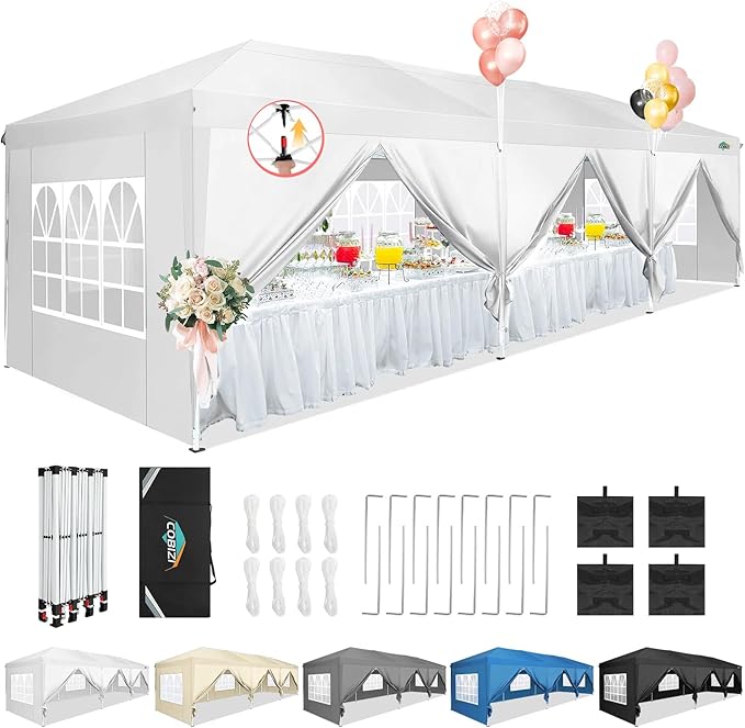COBIZI 10x30 Pop Up Canopy Tent for Parties with 8 Sidewalls Waterproof Commercial Instant Canopy 10x30 Party Tent for Backyard, Wedding Portable Outdoor Gazebo with Carrybag&4 Sandbags(White