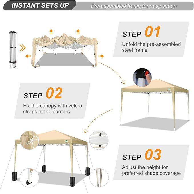 - 【Easy Set up &Take Down】No tools required.The COBIZ1 10x10 easy pop up canopy is designed for convenience. All the parts are already assembled, so you don't have to worry about missing pieces or searching for tools. Whether you're setting up for a party or taking it down after an event, our tent makes the process quick and effortless.